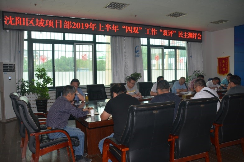 615日,合肥蔡田鋪項目黨支部召開2019年上半年“四雙”工作“雙評”民主測評會議。會議由項目副書記主持,項目部全體職工參加。(朱天娥)