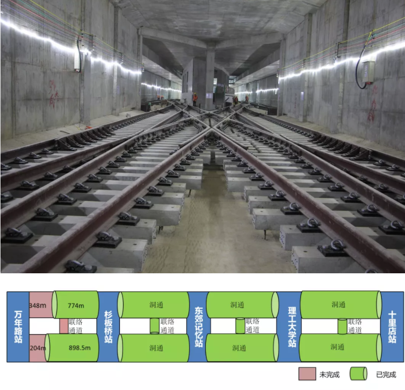 由公司承建的8號線一期工程6標包括四站四區間,四座車站分別為杉板橋站、東郊記憶站、理工大學站、十里店站。其中杉板橋站和理工大學站為地下三層車站,十里店站為8號線一期工程終點站,車站總建筑面積為83357㎡,工程造價5.51億元(不含盾構,標段總造價7.84億元),盾構區間長度為3364.529雙線延長米。項目為中國中鐵BT項目,合同工期為2017年1月—2020年12月。