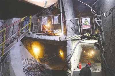 而且該段隧道為存車折返線,隧道十分寬大,無法采用常規(guī)的盾構機掘進,因此這504米長的距離只能人工掘進,據該負責人介紹,這段隧道都在地下9至11米,隧道的樣式如同馬蹄形,面積大約有88.7平方米,純手工作業(yè),每天的掘進量大概只有60多厘米。