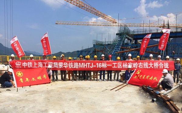 6月20日,由中鐵上海工程局承建的蒙華鐵路楊家嶺大橋右線最長連續梁順利合龍,標志著蒙華鐵路楊家嶺大橋右線合攏段澆筑完成。